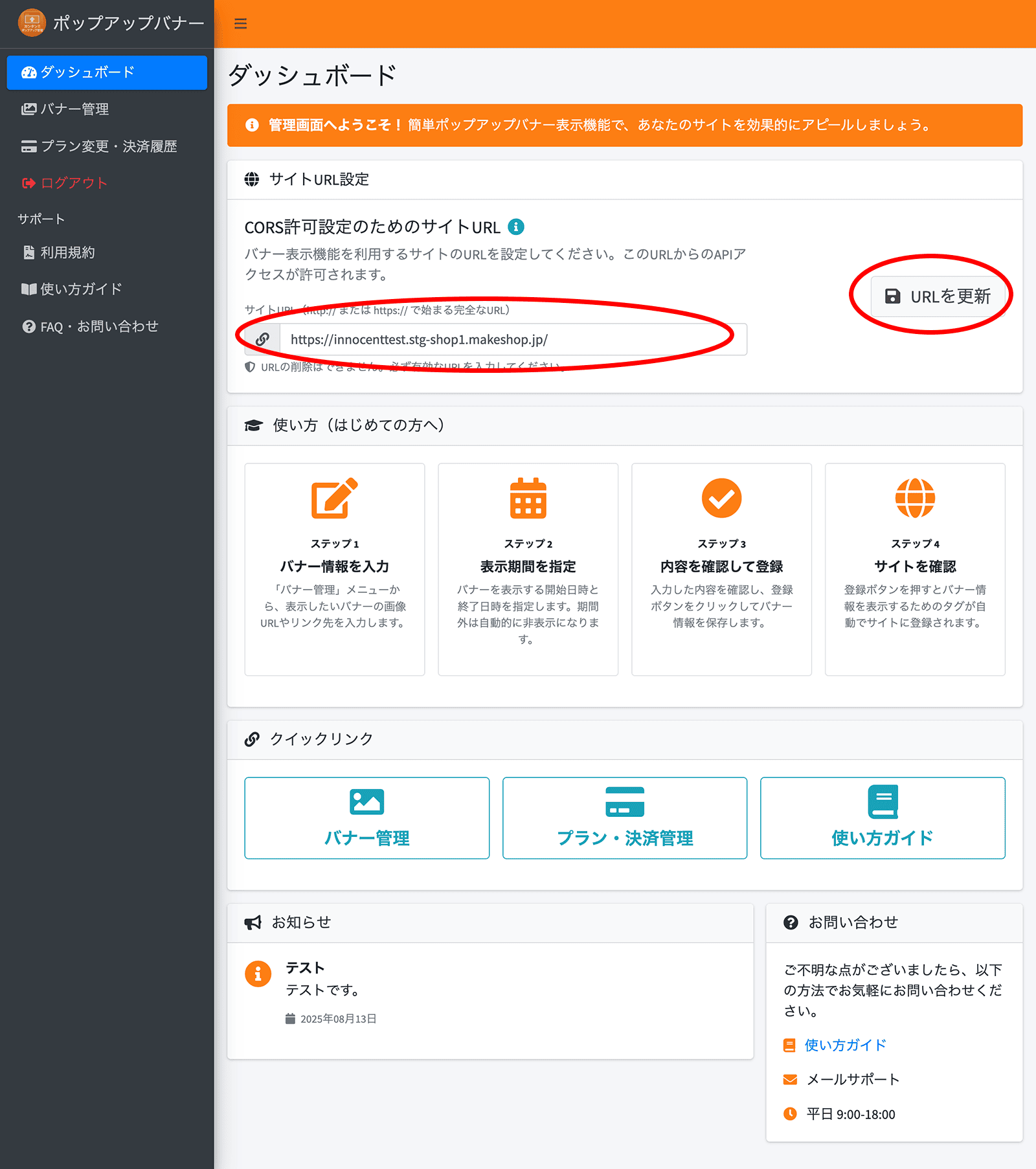 URL記入欄にあなたのショップのURLが入力されていることを確認してください。