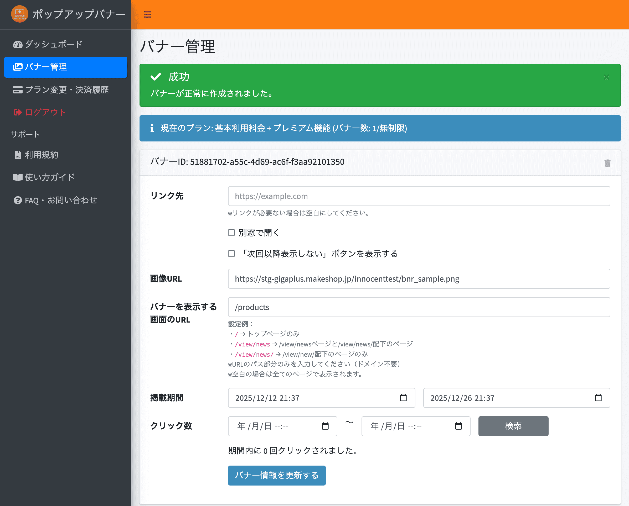 プレミアムプランでは、バナーがどれくらいクリックされたかを確認することができます。