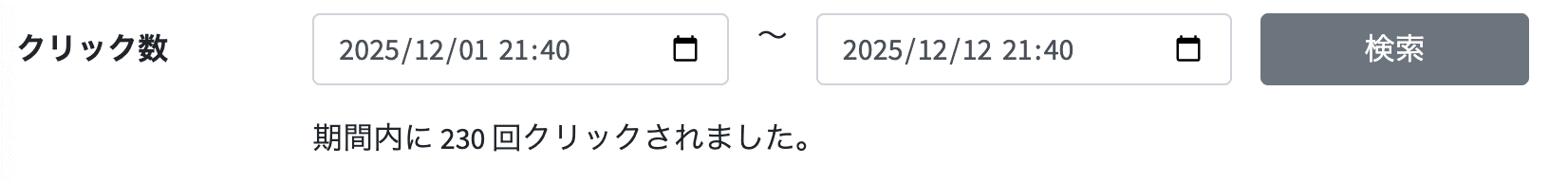 「クリック数」の期間を設定して「検索」ボタンをクリックして回数を確認ください。